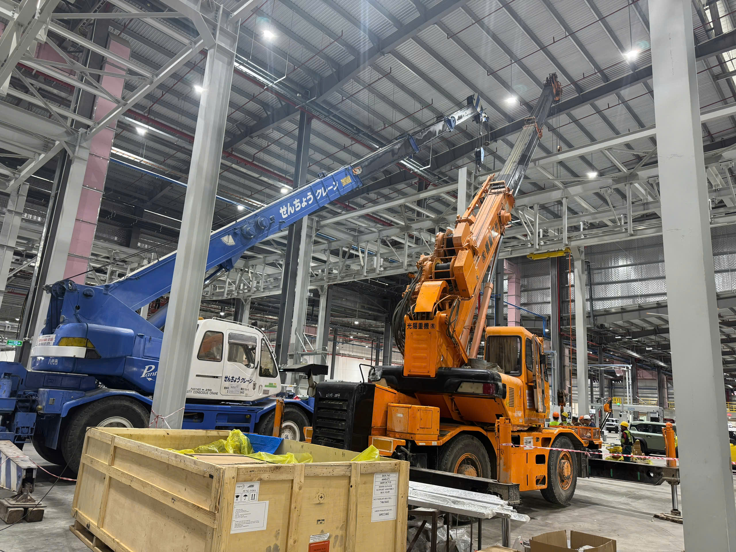 Xe cẩu lắp dựng trong nhà xưởng