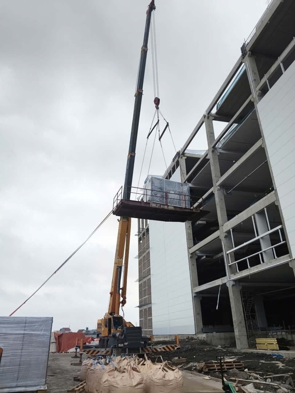 Xe cẩu cẩu hàng máy AHU lên tầng