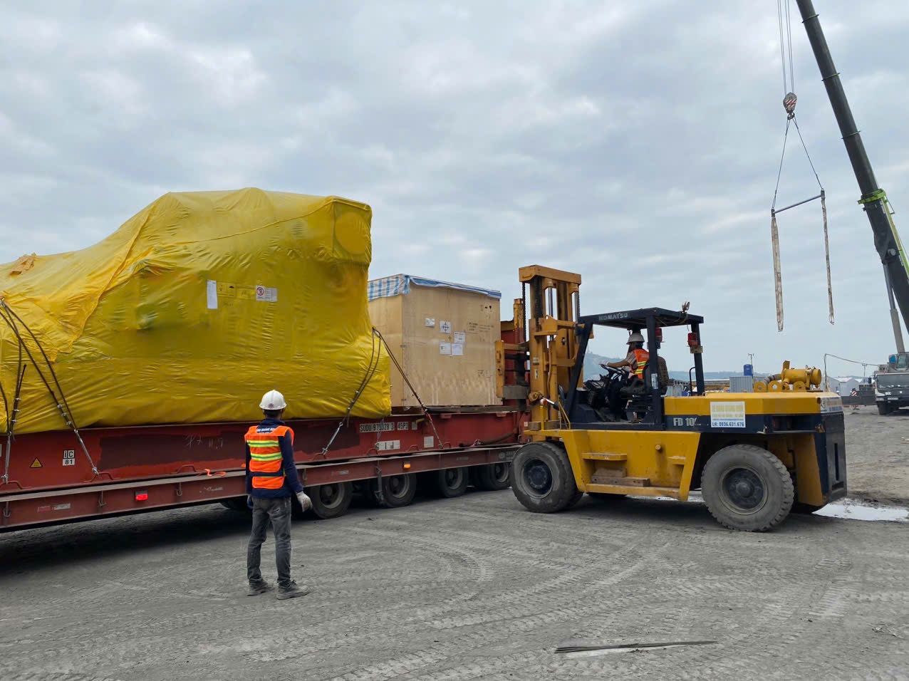 XE NÂNG QUẢNG NINH dỡ hàng phụ kiện của chiller