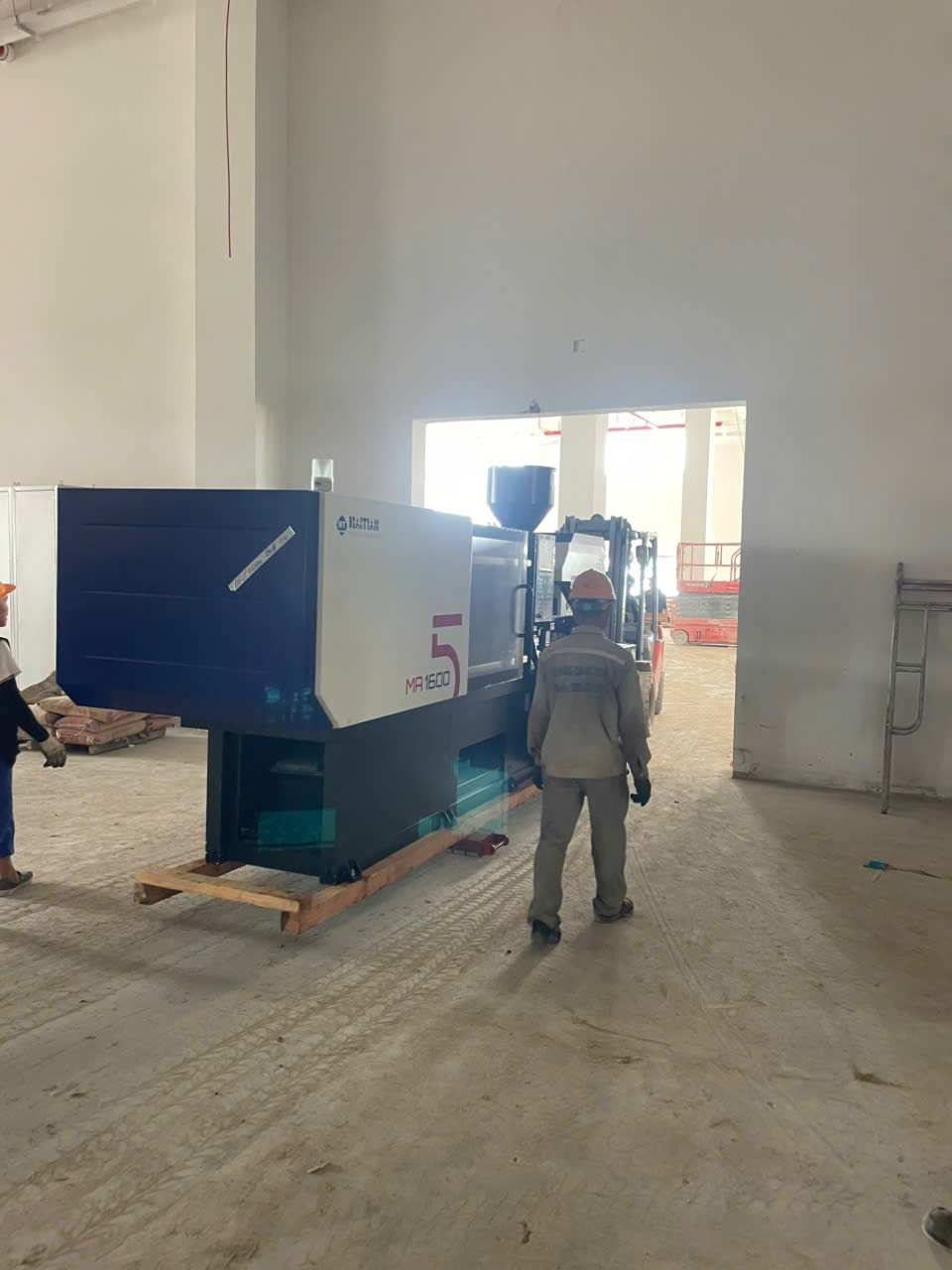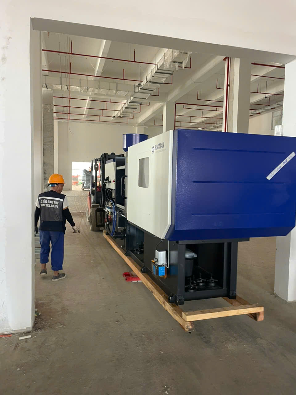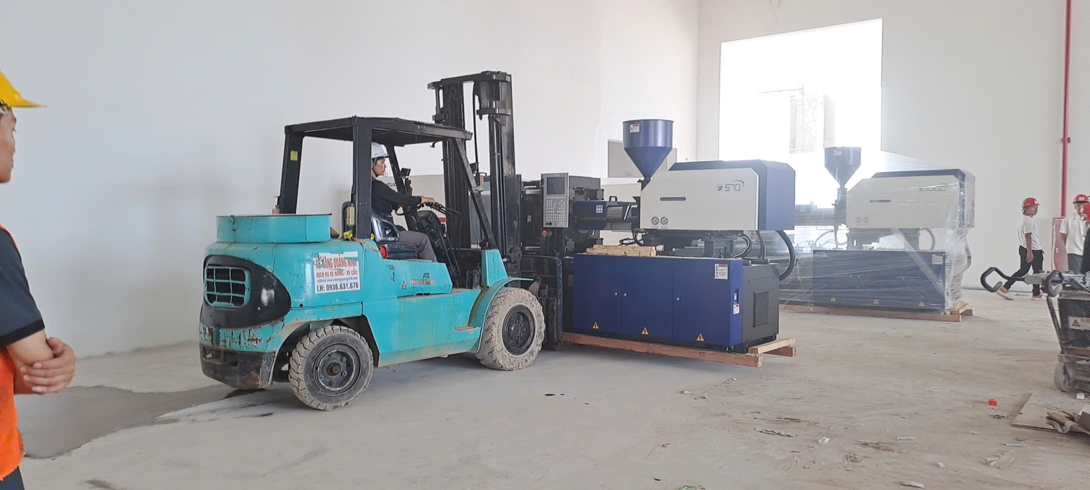 XE NÂNG QUẢNG NINH di chuyển máy ép nhựa trong nhà xưởng